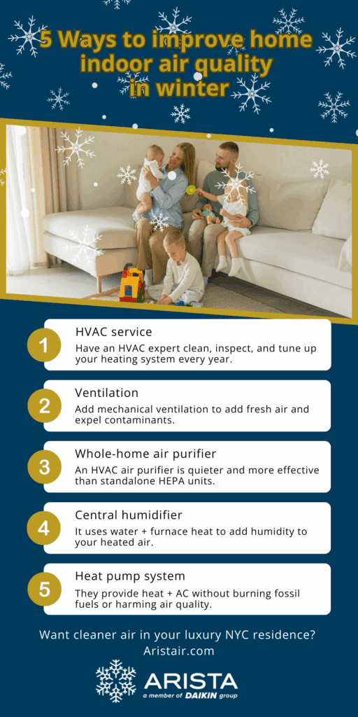 Poor air flow. When all of the home windows and doorways are closed and sealed tight to maintain out winter climate, contaminants corresponding to particulate matter, VOCs, carbon dioxide can extra simply construct up within the air. Micro organism, viruses, mould spores, and odors may linger longer within the air. In NYC highrises, the place the home windows could not open in any respect, the issue could be even worse.